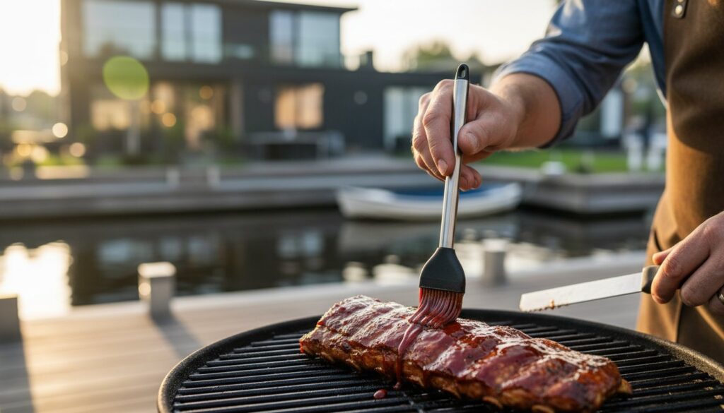 Timing is cruciaal om verbrande suikers te voorkomen. De gouden regel: glaceer je vlees pas in de laatste 20-30 minuten van de bereiding. Zo krijgt de saus de kans om in te dikken en plakkerig te worden. Speel met de ventilatieschuiven van je Monolith kamado: iets minder lucht zorgt voor een lagere temperatuur en helpt de saus perfect te “zetten” voor die ideale tackiness. Te vroeg of te veel saus en je stoomt de korst, met een zompig resultaat tot gevolg.
