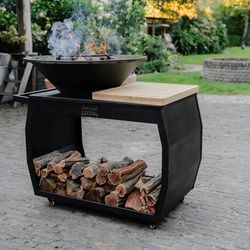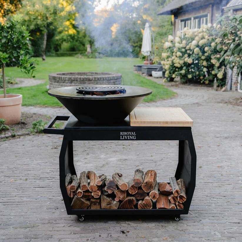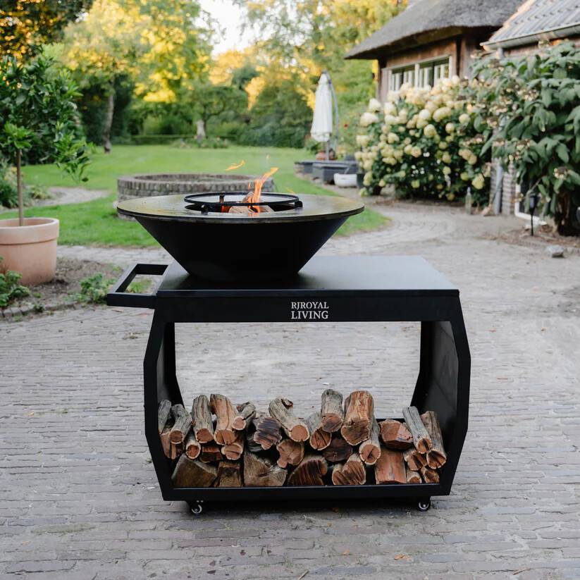 Daarnaast functioneert deze BBQ plancha grill 80 cm ook als vuurschaal. Met een kookhoogte van circa 100 cm geniet je van veel warmte en een goed zicht op het vuur. Tegelijk zorgt de ruime houtopslag ervoor dat hout altijd binnen handbereik ligt.