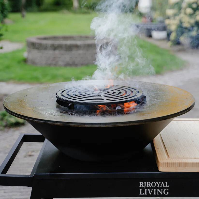 Tijdens het grillen biedt de 8 mm dikke stalen bakplaat van 80 cm doorsnee volop ruimte. Je bereidt eenvoudig vlees, vis en groenten zonder houtskool te gebruiken. Omdat je volledig op hout stookt, komt de plancha snel op temperatuur en wordt samen koken extra gezellig.