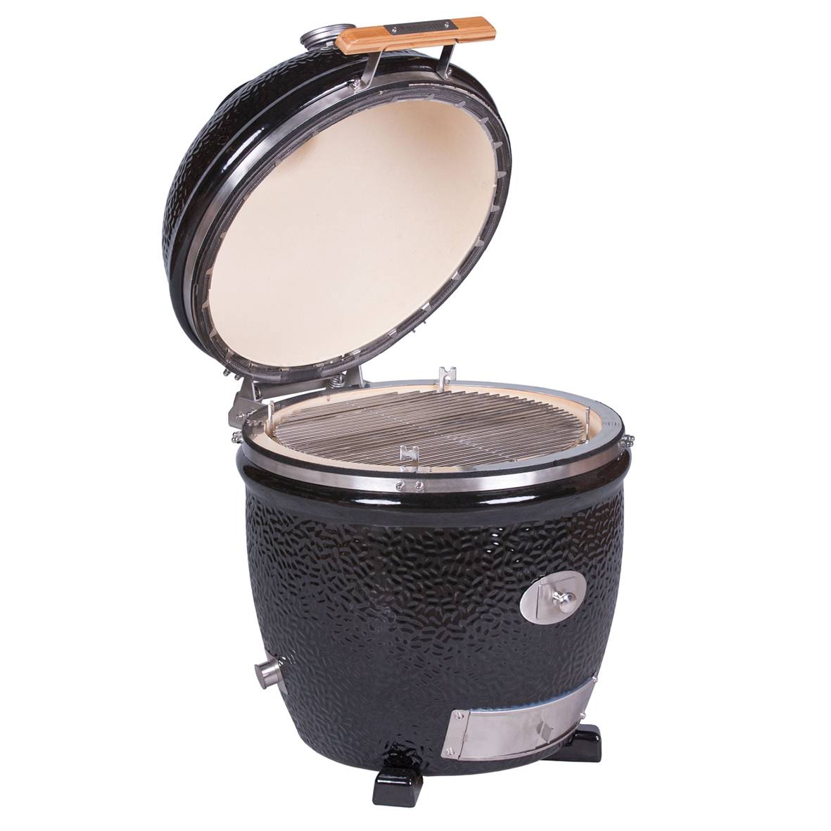 De MONOLITH Classic is de klassieker en tevens het populairste barbecuemodel uit ons assortiment. Met een roosterdiameter van 44cm is de MONOLITH Classic de eerste keuze voor het grillen, bakken, smoken, roken en garen voor de hele familie en je vrienden. Het barbecue oppervlak dat door het extra barbecuerooster en het optionele 2e roosterniveau kan worden vergroot, biedt genoeg plaats om meerdere gerechten en bijgerechten gelijktijdig te garen. Met het unieke chip-feeder-system kun je via het klepje aan de voorkant van de kamado houtsnippers en/of rookpellets op de gloeiende houtskool plaatsen zonder het deksel te hoeven openen. Aangevuld met de omvangrijke keuze aan accessoires zoals onder ander een rotisserie, gietijzeren rooster, pizzasteen, wokhouder en wok of plancha wordt de MONOLITH Classic een volwaardige buitenkeuken.