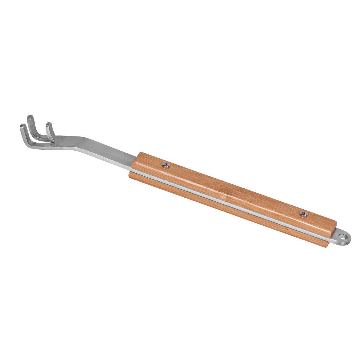 Met behulp van de stenenheffer haal je op eenvoudige wijze de hete deflector- of 10 mm pizzasteen uit je Monolith.